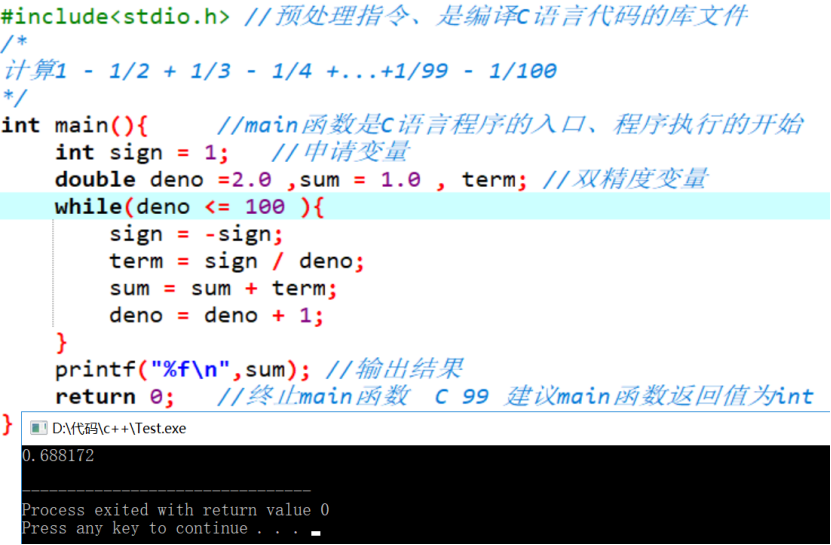 计算1 - 1/2 + 1/3 - 1/4 +...+1/99 - 1/100