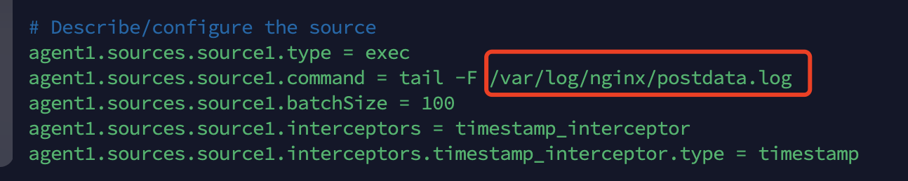 将指定请求的参数输出到 postdata.log 中,调试没问题后就去修改flume中的监控路径变成现在这个postdata.log