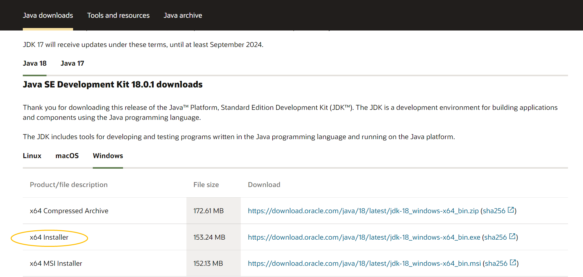 选择符合操作系统的版本下载,本文以 Window 64位系统为例,下载结束后,JDK 的安装根据提示正常进行即可(安装 JDK 的时候也会自动安装 JRE)