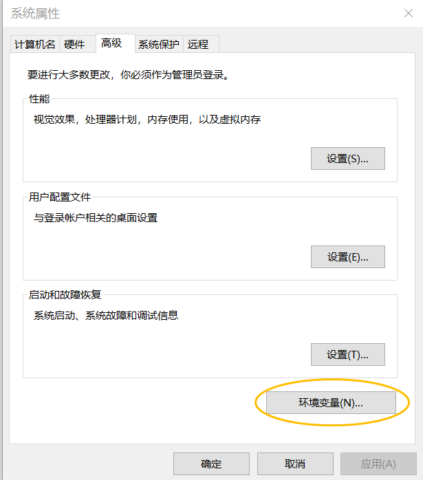 首先,按照 我的电脑->系统属性->高级系统设置->环境变量 打开环境变量设置窗口