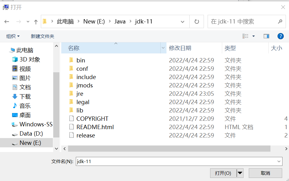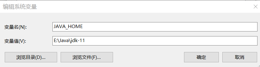 变量值:电脑上JDK安装的绝对路径 (我的jdk-11是因为后来使用的版本是11)