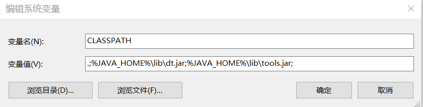 变量值:.;%JAVA_HOME%\lib\dt.jar;%JAVA_HOME%\lib\tools.jar;