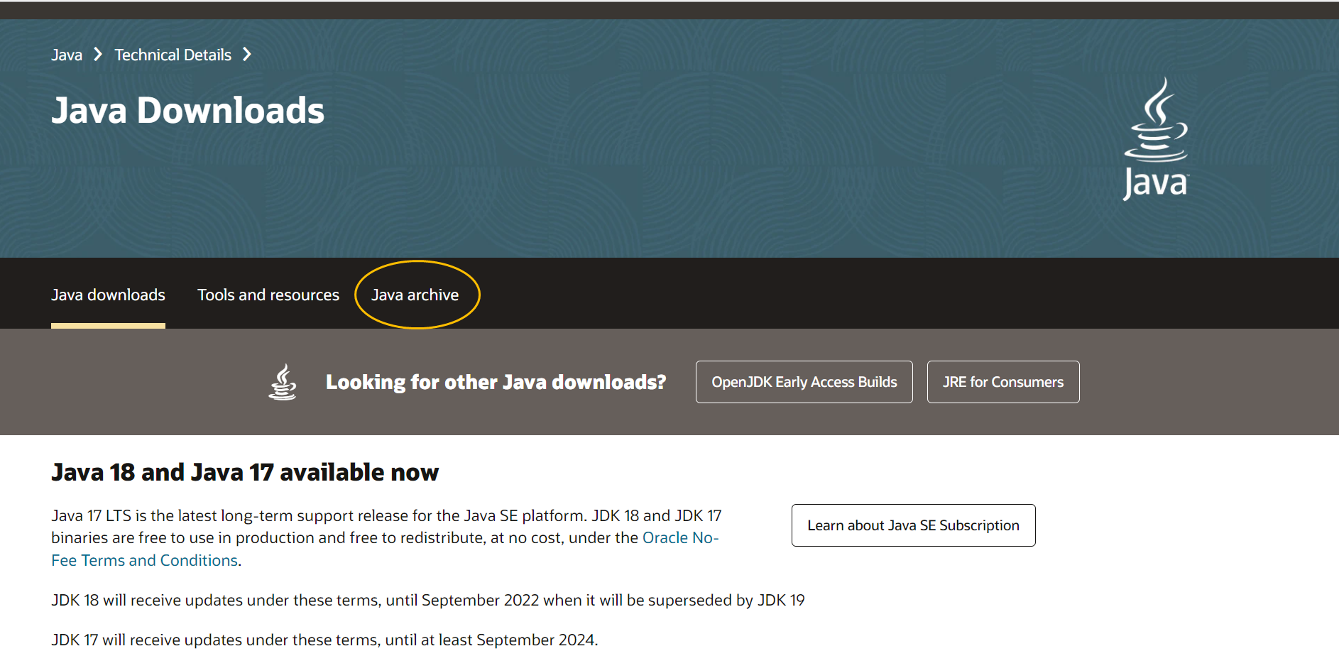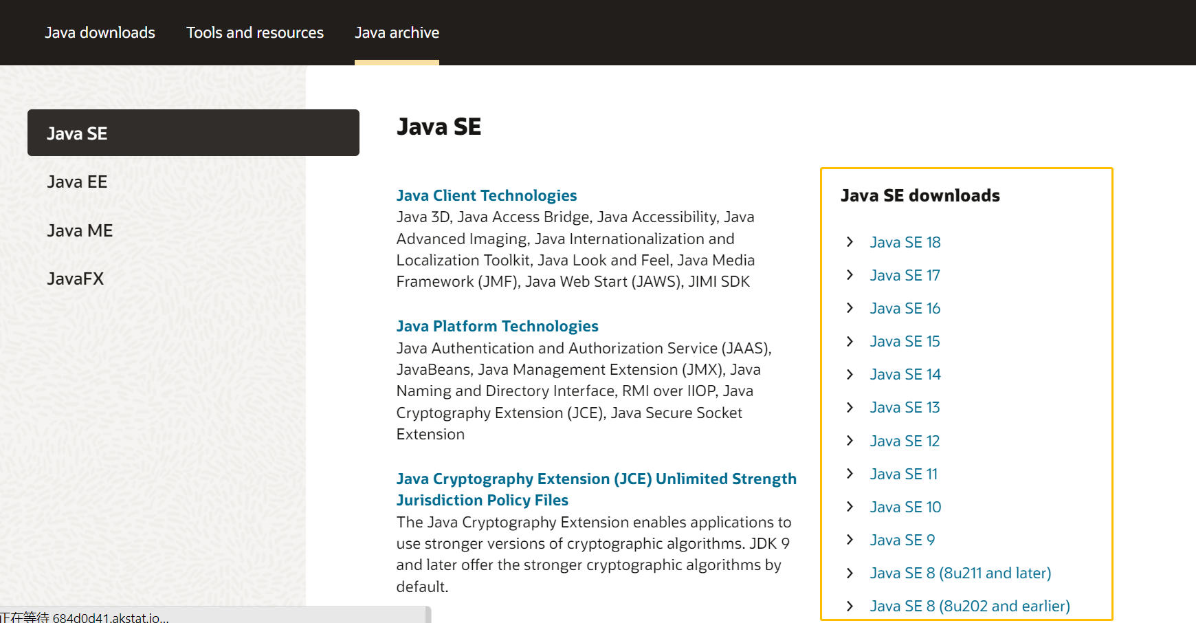 在官网点击 Java archive,选择对应版本下载,如果之前没有安装过其他版本的JDK,环境配置和上述是一致的