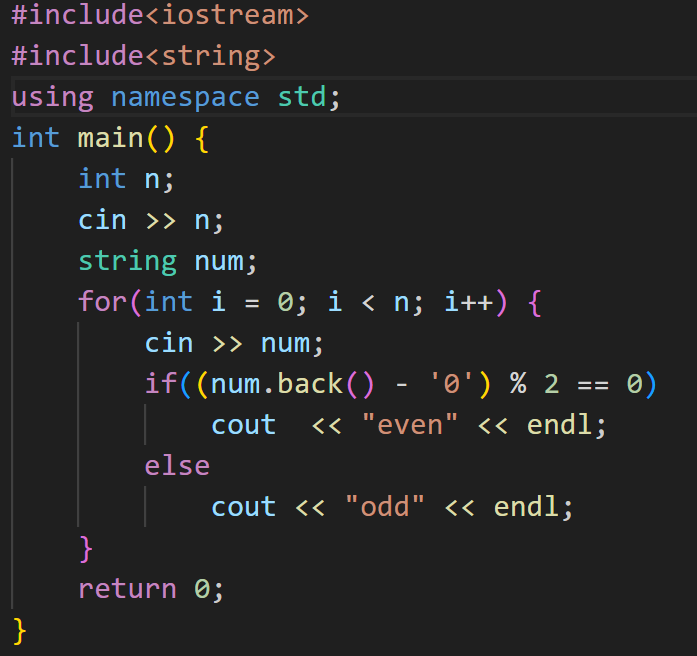 这题就常规字符串,看末尾字符代表的数字奇偶