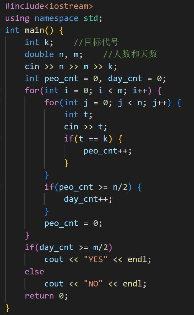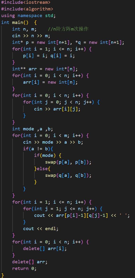 总结:同上,这种思想现在已经被我铭记于心了;对了那个C++貌似不支持像C语言那样定义大小是变量的二维数组,还是用的动态内存分配的笨办法,以后会尽量学着事先在全局定义一个足够大的数组捏