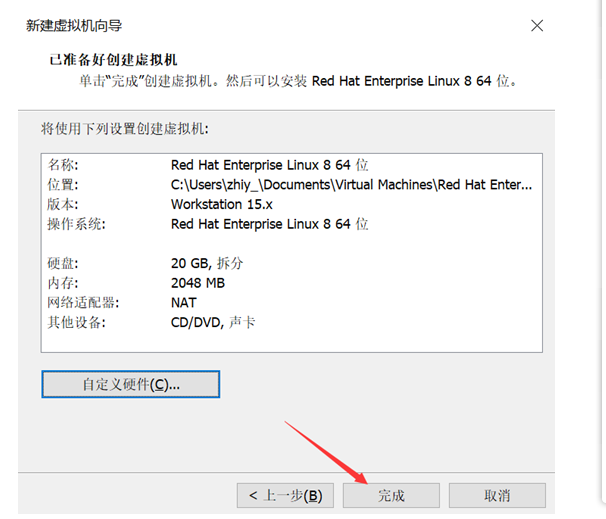 点击版本选择redhat linux8 64位,再点下一步出现下图