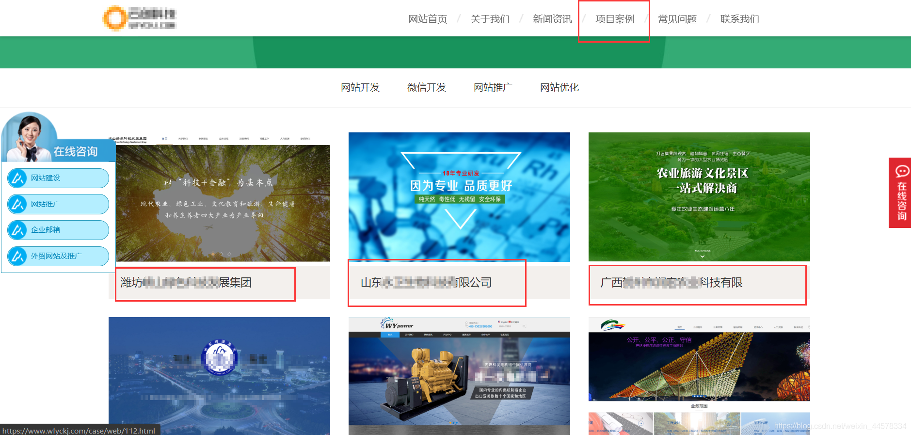 我们就可以进这个建站官网,找客户案例,寻找同模板的案例网站,一般的网站建设公司都是用同一套模板的,这样的话一站有洞,全站遭殃~