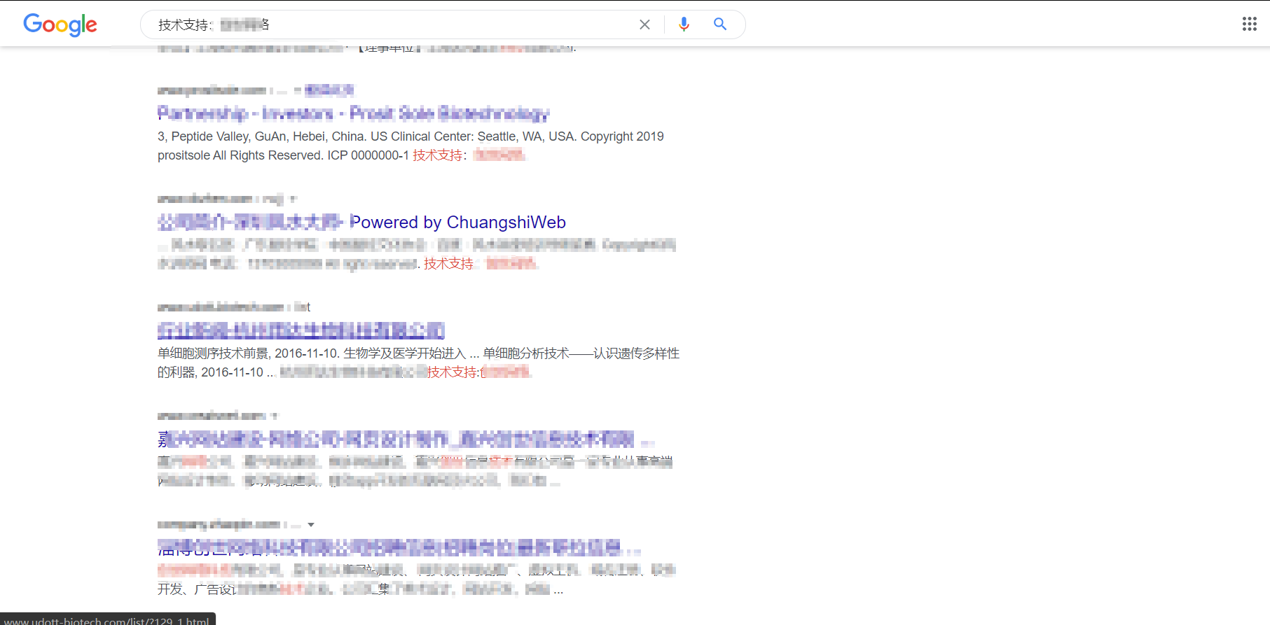 首先观察一下网站底部是否有技术支持:xxxx|网站建设:xxxx之类的标注,一些建站企业会出于知识产权保护或者是对外宣传自己的公司,会在自家搭建的网站上挂上技术支持等之类的标注,很多建站企业往往某种类型的网站都是套用的同一套源码,换汤不换药,运气不错的话,那我们的事件就秒变通用啦~