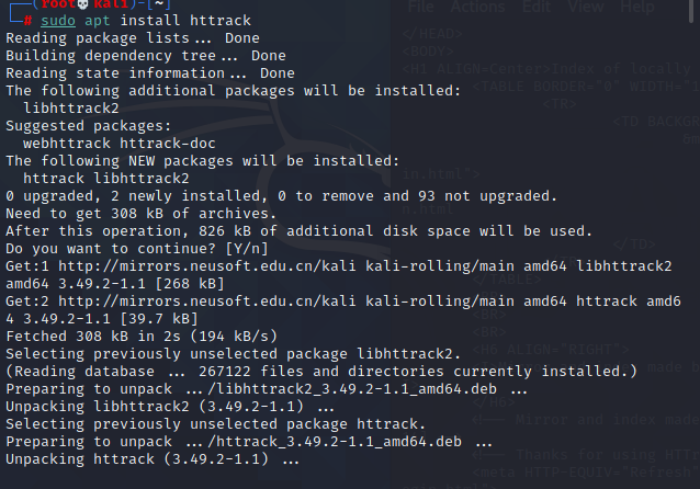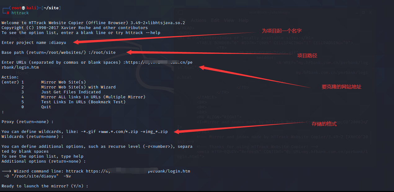之后一路回车就行了,httrack会爬取所有网站的js文件以及图片保存到相应的文件夹中