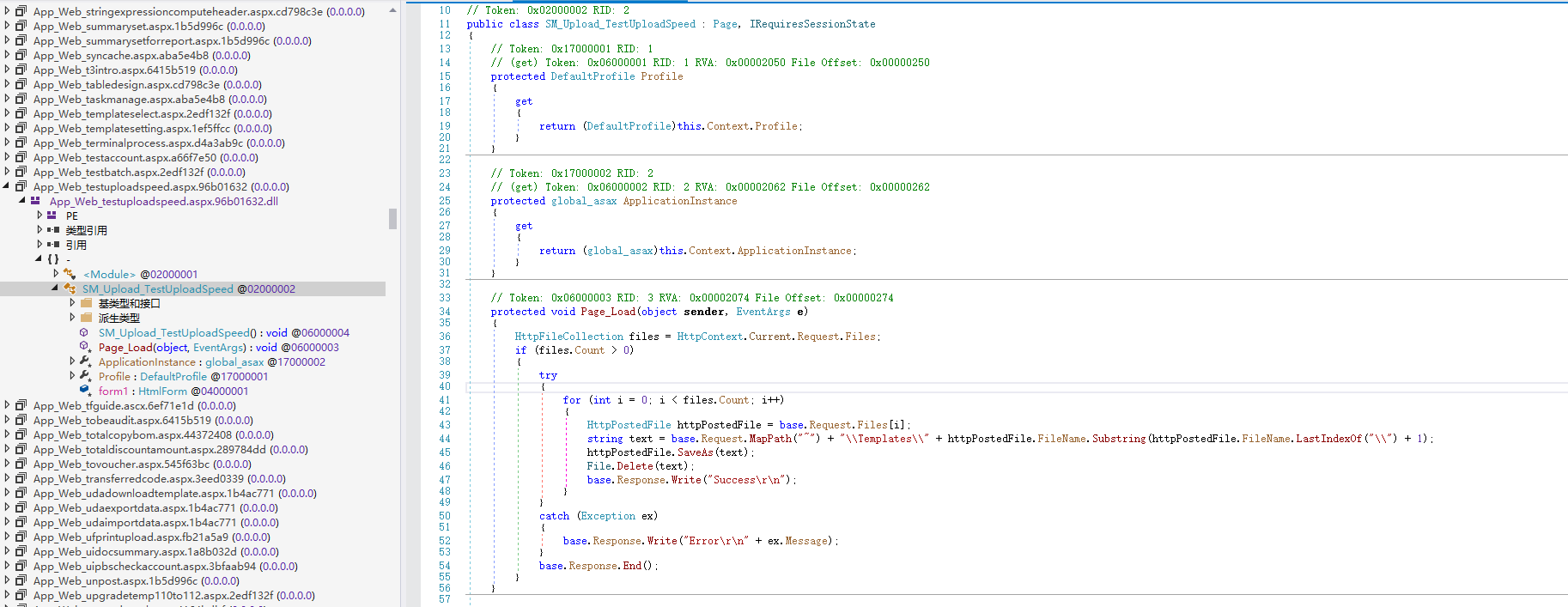 看到源码目录下有个名叫TESTuploadspeed的文件,打开看了一下,找到继承的dll文件进行反编译