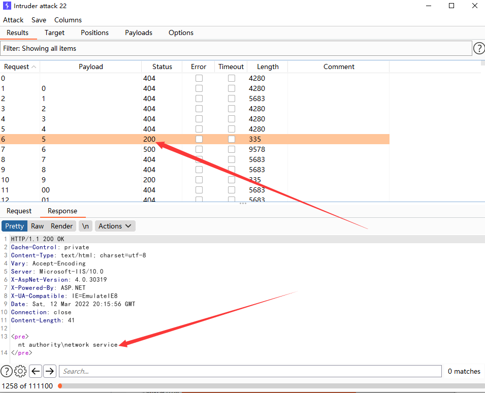 成功访问到了上传的文件,并且执行命令也成功了,中间有一些状态码是500的,这个应该是我们在访问文件的时候,因为发包太快,还没有执行命令下一个包就写入了,导致文件被占用