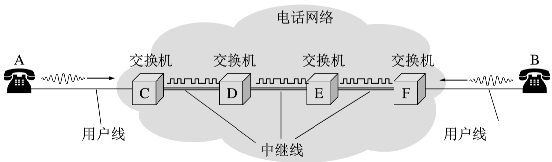 电路交换网络中采用多路复用的方式共享中继线(节省资源)。