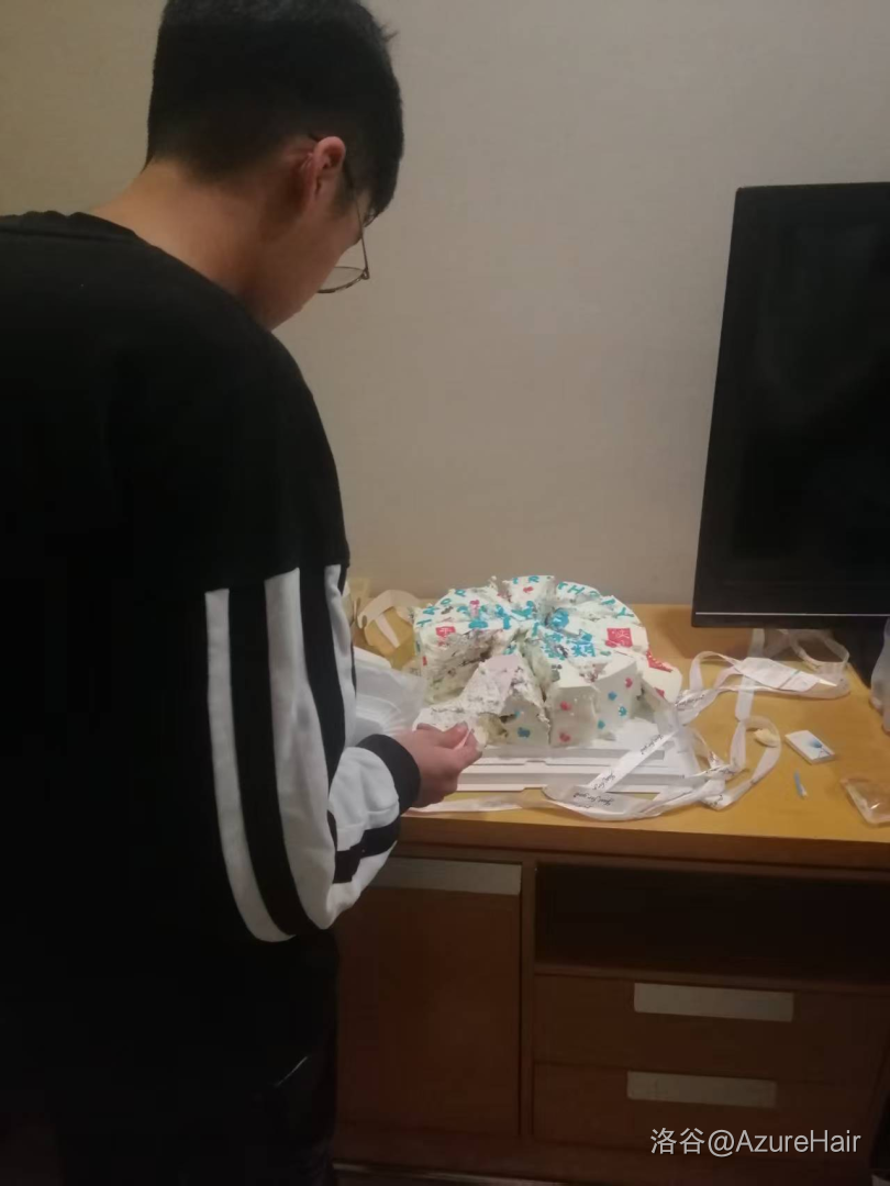 在10月1日晚上,正值 oyy 的生日,在9点放学后在我们宿舍举行了庆祝仪式,唱了生日歌,切了蛋糕,欧神也给大家一展歌喉,一首起风了迷倒众生。