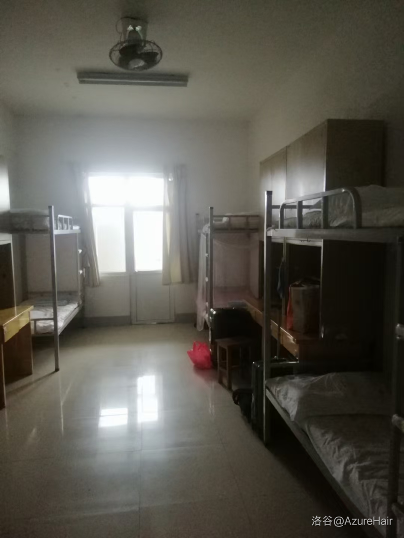 对于这个宿舍我就不得不吐槽一下空调了,当时七月份十分的热,前两天我们宿舍跟蒸箱似的于是和老师反应,老师找人来修,措施是将空调从18℃调到了零下5℃,然后从六点开到了九点终于比走廊高了5摄氏度(还是中央空调)