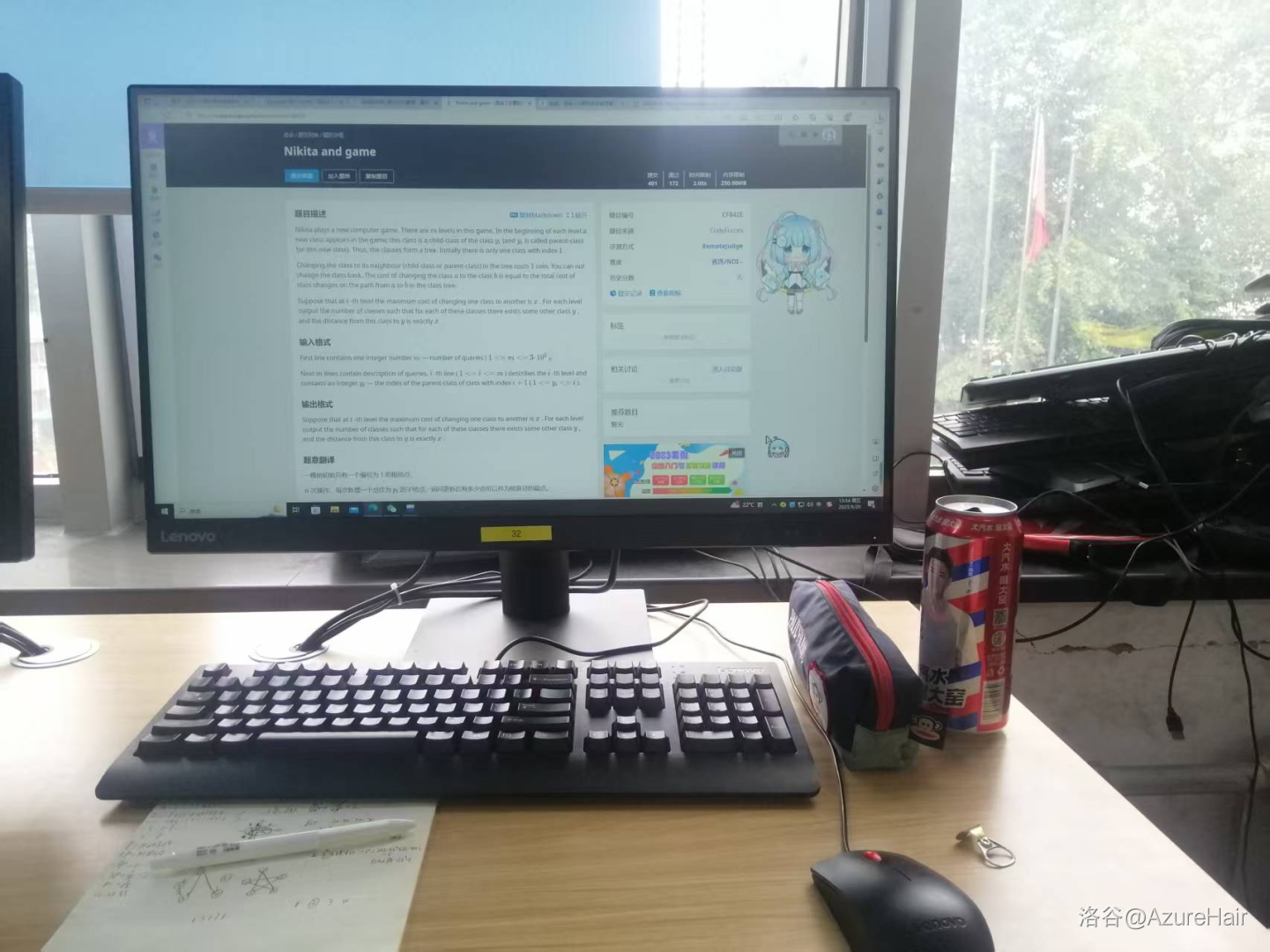 首先到达的第一天就染上了一款开放世界冒险游戏,接着被猫猫(pjykk)传染感冒,每天白天疯狂做题,打比赛,补题,晚上9点放学回宿舍就和宿舍记得猫猫和 oyy 打gartic 到凌晨,早上7点钟再艰难的爬起来去训练。