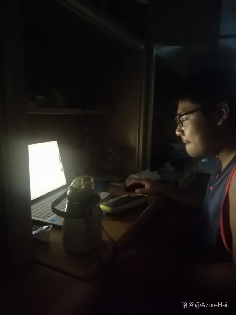 随后,NOIP2023如期而至,本就水平一般的我在考场上发挥失常,于是遗憾离世。当初考完刚上车我就感觉头有点胀胀的,没走多久就开始发烧,然后回家一量烧到了38度多,就开始疯狂窝在床上。过了几天一查分196,我本就死了的心彻底凉了,这几天我失去了很多,也学到了很多,迷茫了,彷徨了,悲伤了,绝望了,我第一次开始思考我的未来在哪里?或许我就不曾抱过走竞赛的念头,但是出于热爱与向往,我坚持走了下去,是我自己没有珍惜,浪费了大量的时间,从而失去了我所珍爱的实物,这是学信竞的最后一课,让我第一次真正的失去,让我真正的体验过失败,让我第一次认识到我所拥有的究竟有多么珍贵。
