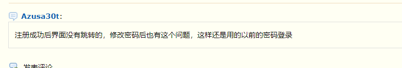 注册成功后界面没有跳转的,修改密码后也有这个问题,这样还是用的以前的密码登录,响应速度还是很快,能够解决需求