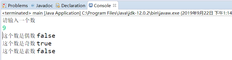 1 /** 2 * 1.文件功能:输入一个数 调用MyInteger 判断这个数是否是素数、偶数、奇数 3 * 2.成员变量:n输入的数 4 * 3.方法:主方法 5 */ 6 import java.util.*; 7 public class main { 8 9 public static void main(String[] args) { 10 MyInteger i = new MyInteger(); 11 12 System.out.println("请输入一个数"); 13 Scanner in = new Scanner(System.in); 14 int n = in.nextInt(); 15 i.setValue(n); 16 17 System.out.println("这个数是偶数 "+i.isEven()); 18 System.out.println("这个数是奇数 "+i.isOdd()); 19 System.out.println("这个数是素数 "+i.isPrime(i)); 20 } 21 22 }
