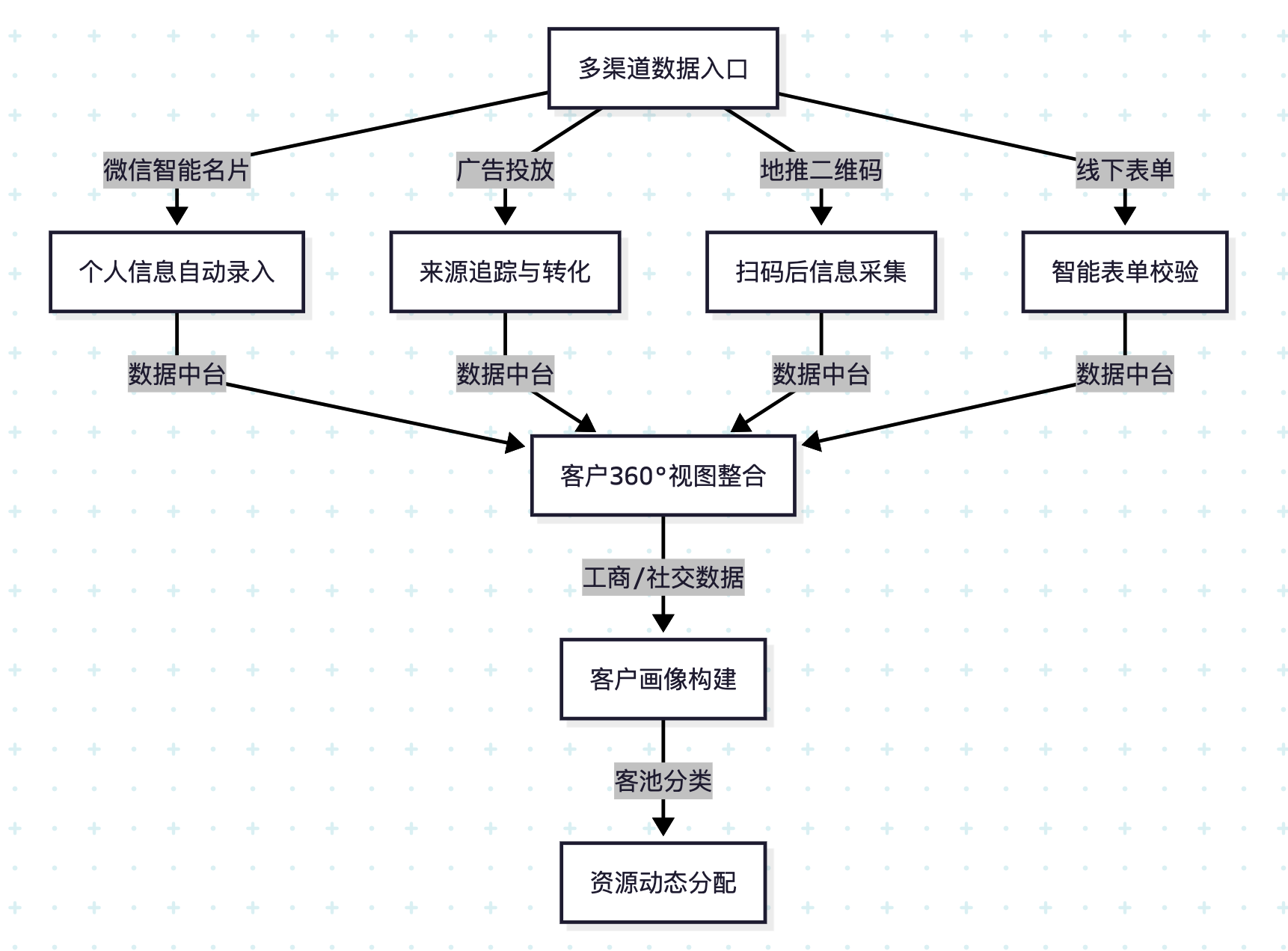 核心优势:通过多触点数据整合,实现客户信息自动补全与实时更新,避免人工录入错误。