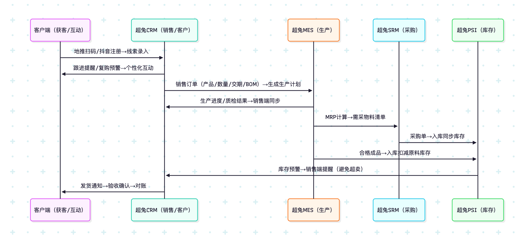 通过Mermaid流程图直观展示超兔的全链路数据闭环: