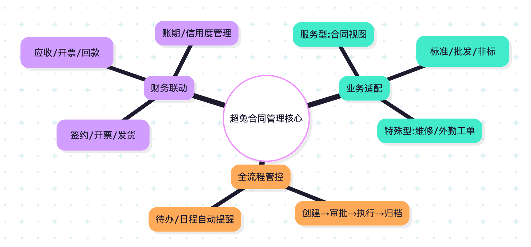 ① 合同与销售节点强关联;② 适合“轻合同”场景 |