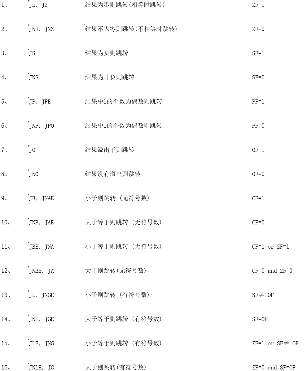 3、使用汇编指令修改标志寄存器中的某个位的值,实现JCC的十六种跳转.