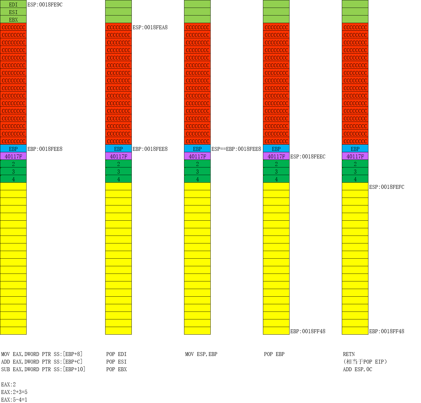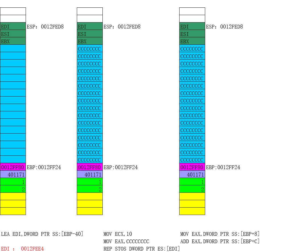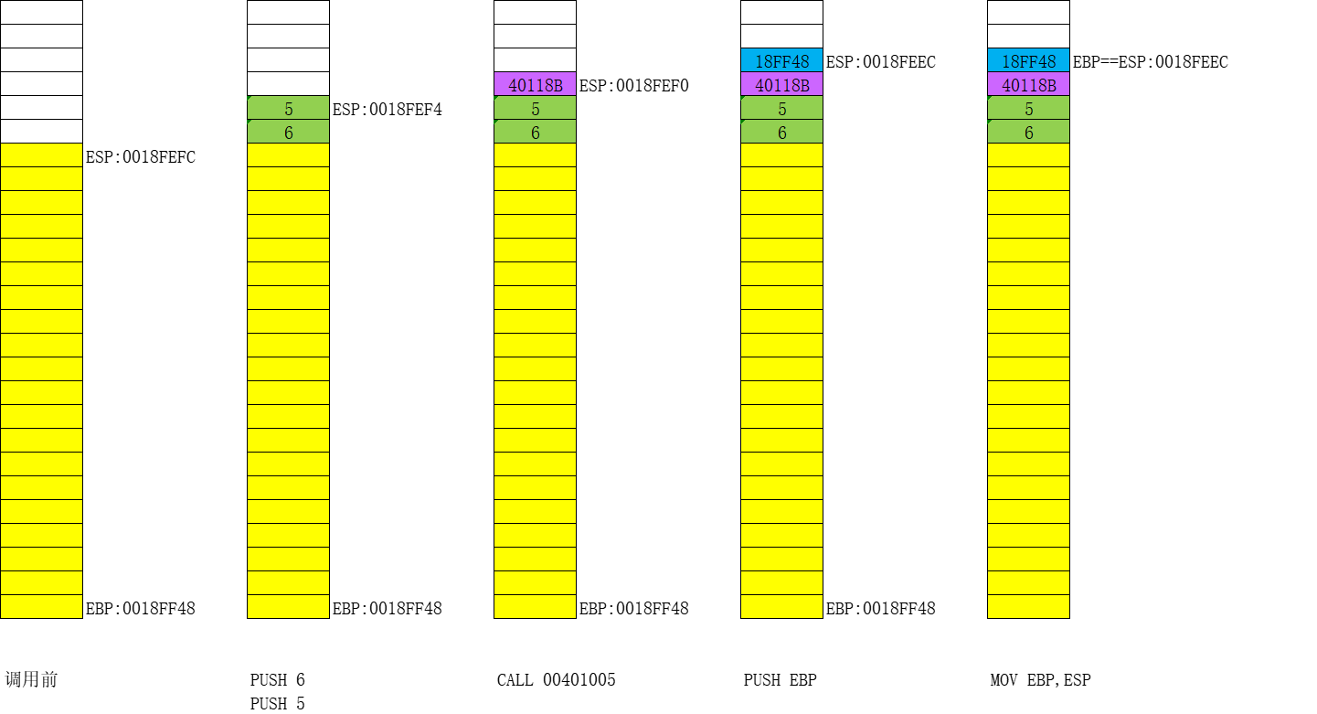 步骤六:开始画堆栈图,并分析出代码的功能,具体过程参见课堂