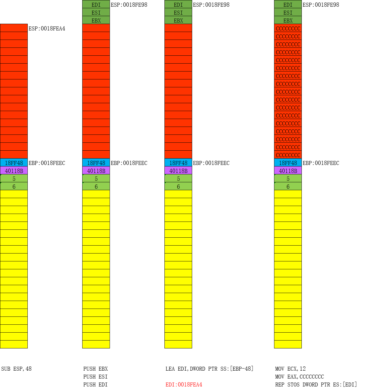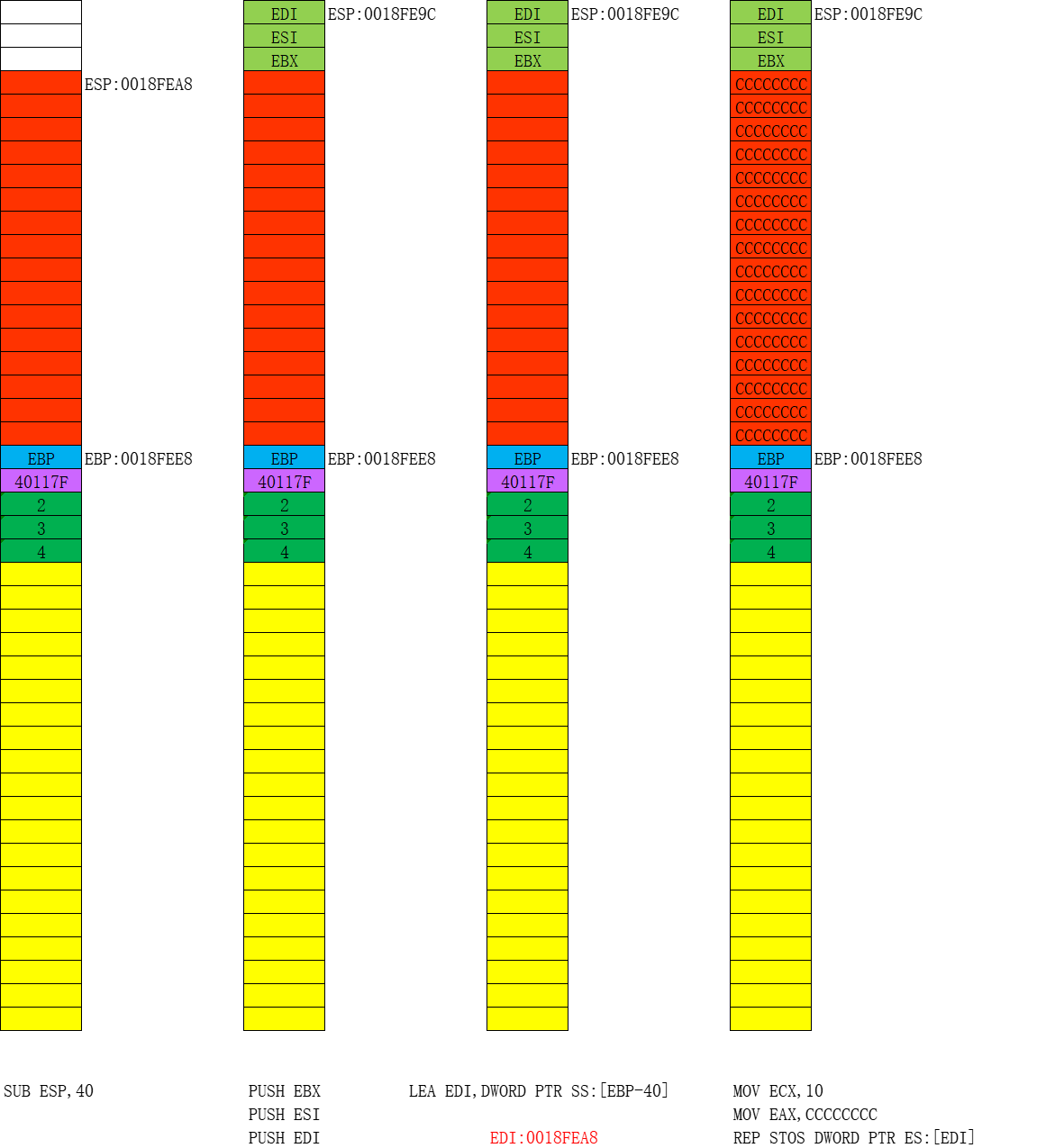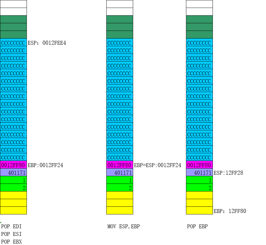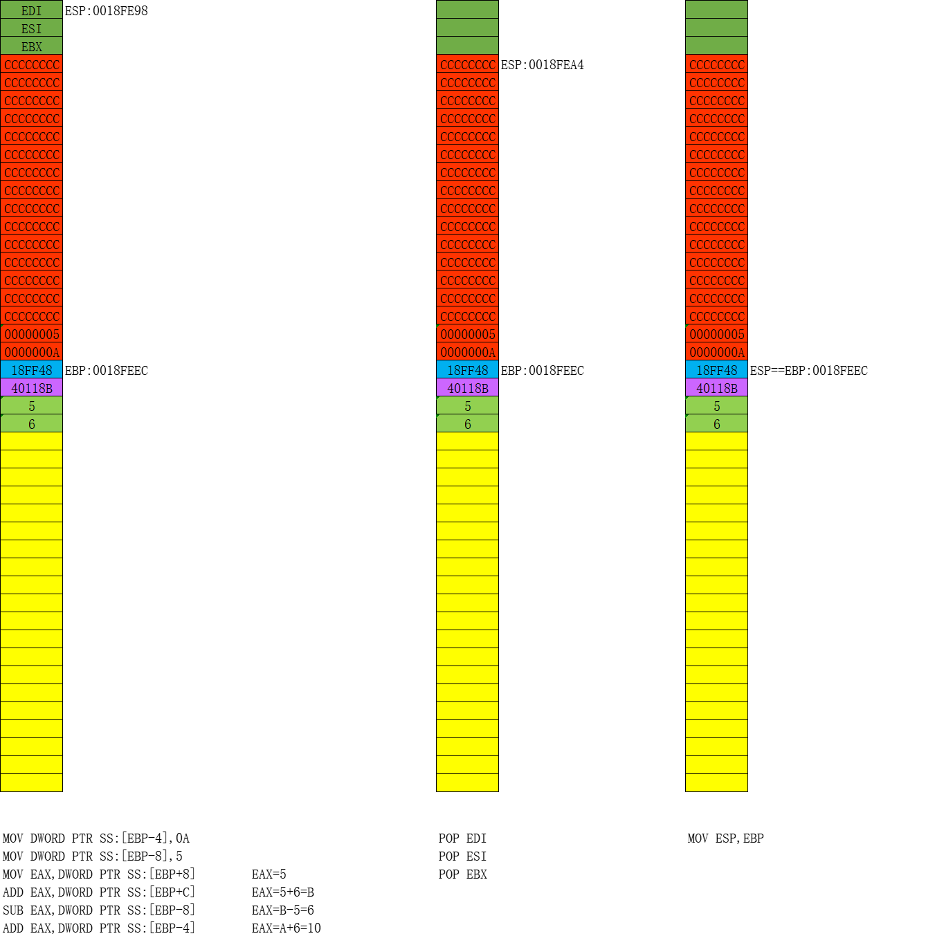 步骤六:开始画堆栈图,并分析出代码的功能,具体过程参见课堂