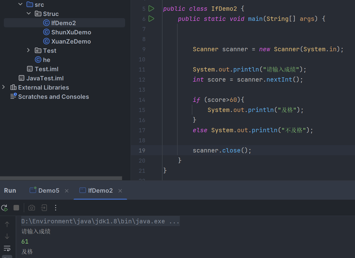 else System.out.println("不及格");