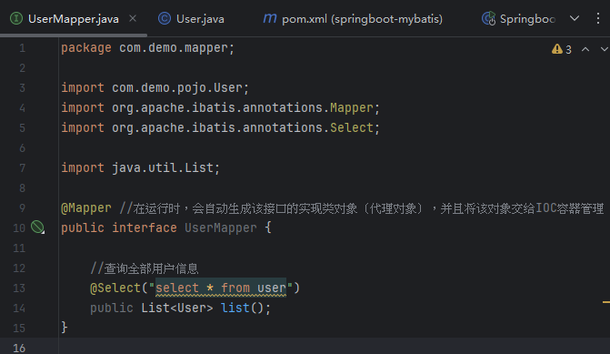 然后创建mapper目录和UserMapper接口,用来放sql语句