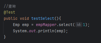 4查询则是通过直接赋值给Mapper接口的形参为Integer的查询方法,然后从数据库得到的数据以Emp类型的形式返回给测试类,测试类把数据转化为Emp类型的对象,并输出对象