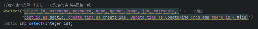 查询(如果查出来有字段数据为null那就是实体类变量名跟数据库字段名不一样查不出来)