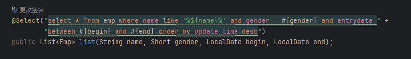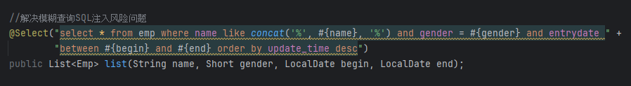 模糊条件查询(单引号之内不能用#{}但是可以用${})(有SQL注入风险)