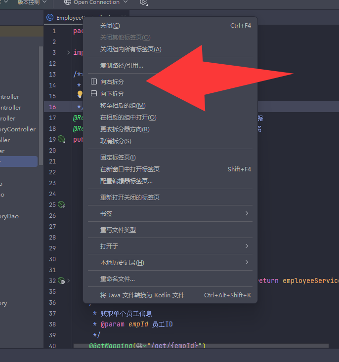 随机打开一个代码页面然后右键点击向右拆分,就能代码双开了