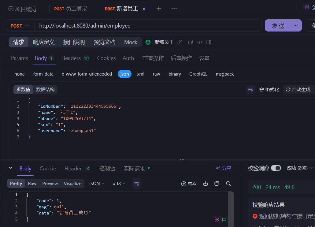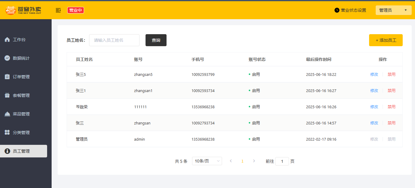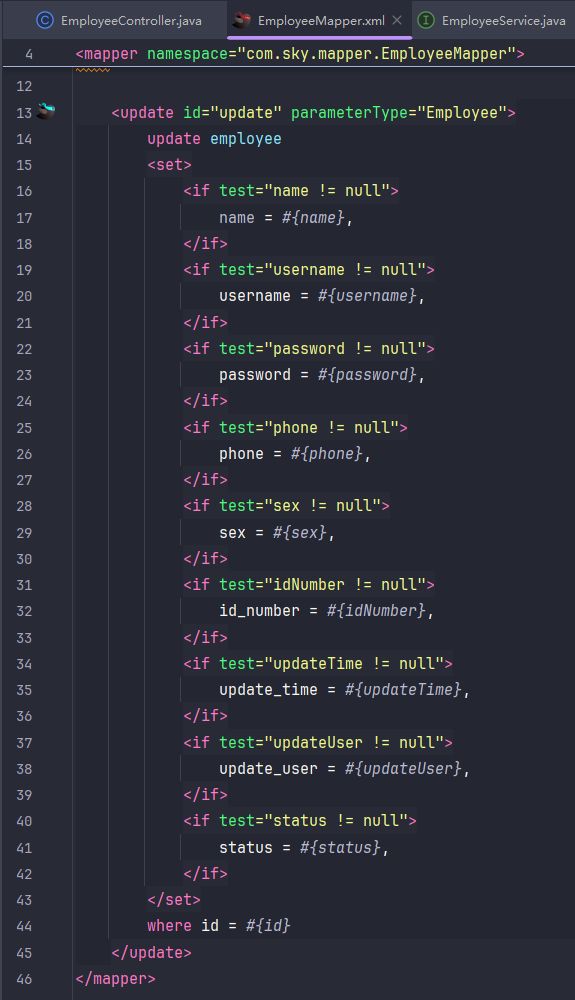 启用禁用员工账号(请求是改状态,但是sql语句是客园通用的动态修改)
