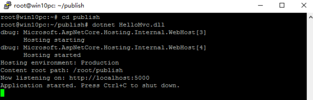直接输入 dotnet HelloMvc.dll 就可以执行了。