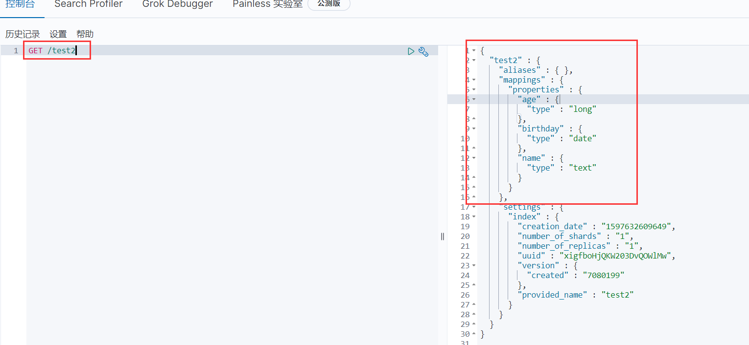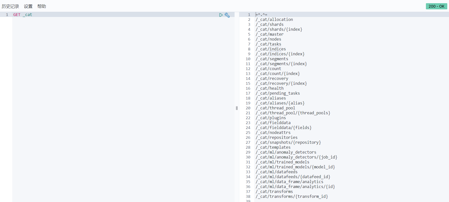 如果自己创建文档没有指定数据类型,那么es就会给我们默认配置字段数据类型,另外,可以通过GET _cat/可获得es当前更多信息
