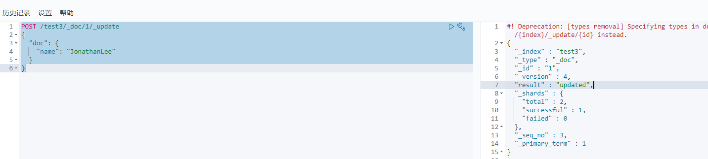 | POST | localhost:9200/索引名称/类型名称/文档id/_update | 修改文档 |