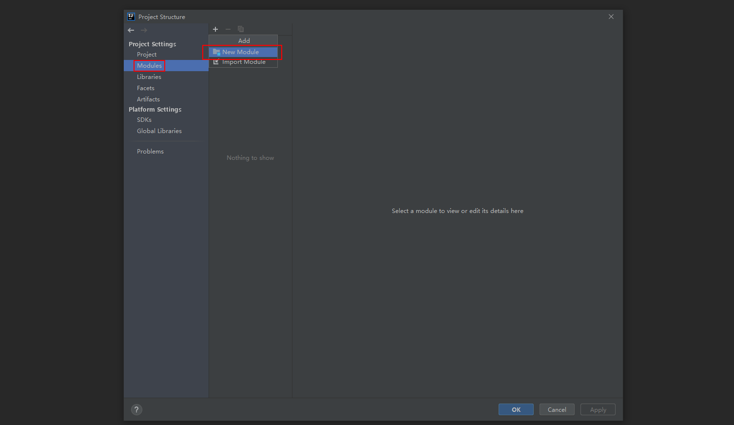创建之后进入IDEA页面之前会出来如下图中的页面,意思是说叫你添加一个项目模块,然后呢你就可以点击+号添加模块,弹出来的页面就和我们之前的页面一样,然后创建就行了,不懂IDEA的可以去我主页看那个Java文章里面有个IDEA的文章,我这里不在介绍了