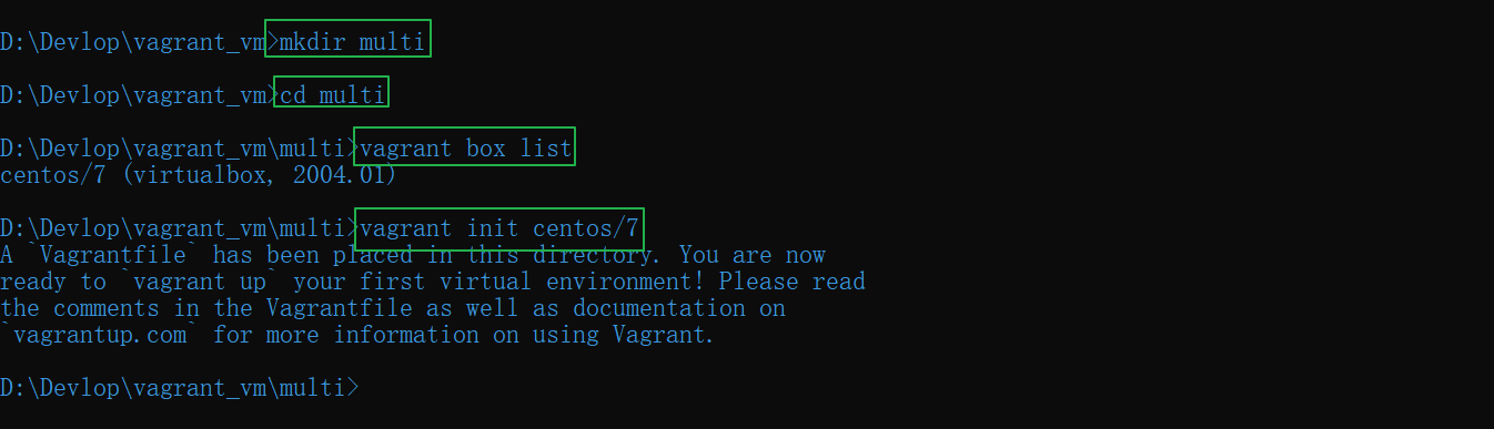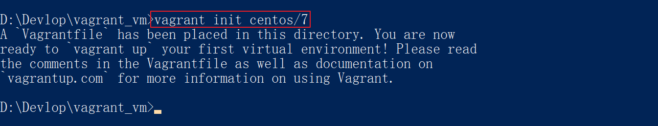 vagrant_vm目录(注意目录最好不要有中文和空格),然后在该目录下使用 cmd 执行如下命令: