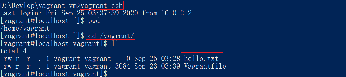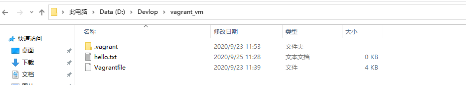 vagrant_vm目录下新建一个hello.txt文件,内容为hello: