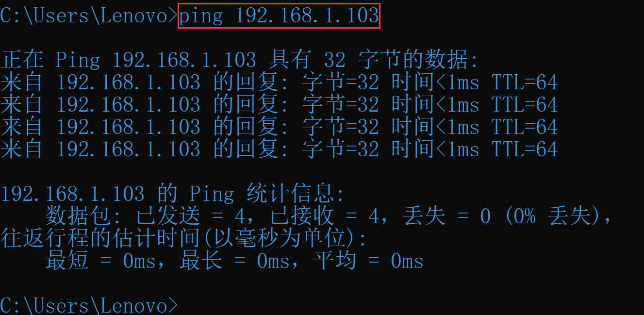 - 新开一个 cmd窗口,ping 这个地址看是否能通: