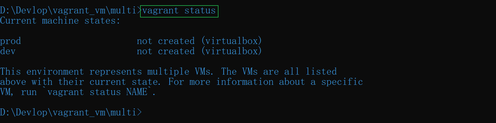 not created的虚拟机,名称分别为 “prod” 和 “dev”。- 我们可以使用