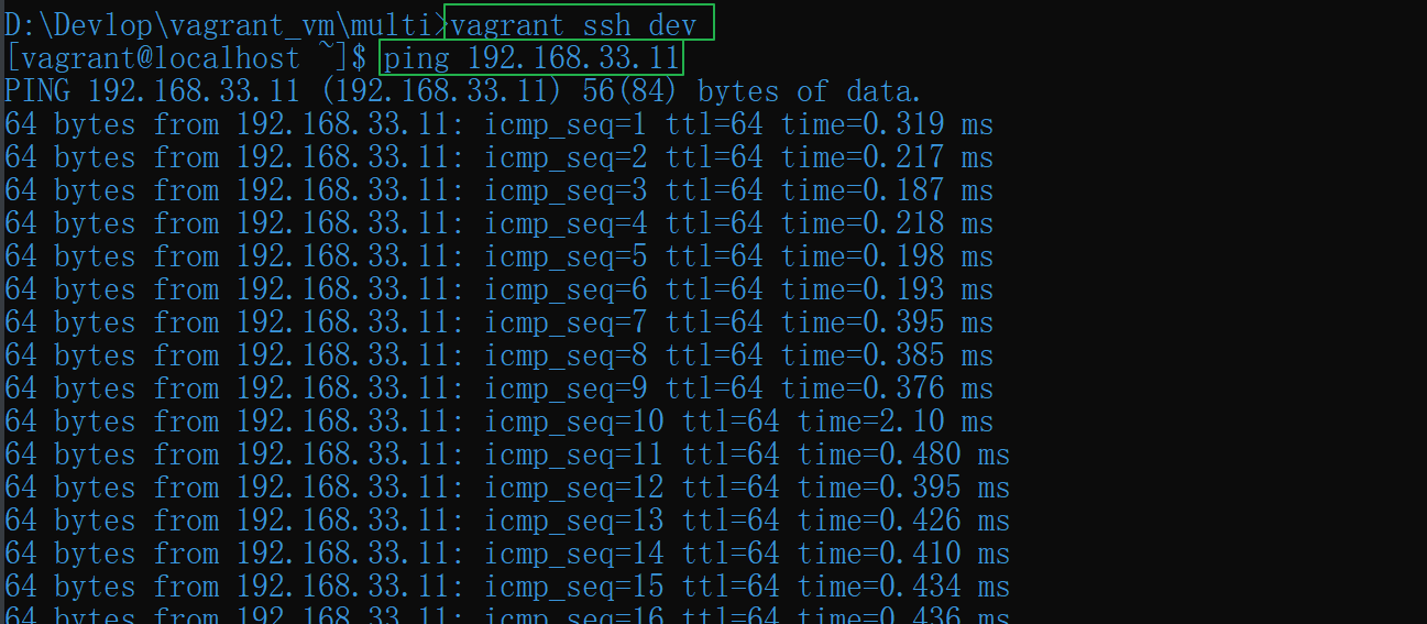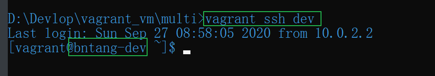 vagrant ssh 主机名就可以连接上它们了。