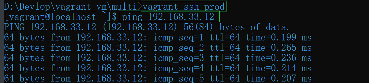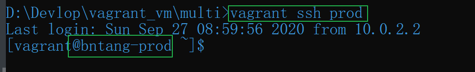 vagrant up来启动两台主机,也可以通过vagrant up prod来单独启动 “prod” 这台虚拟主机。- 启动后(第一次启动耗时可能比较长),使用