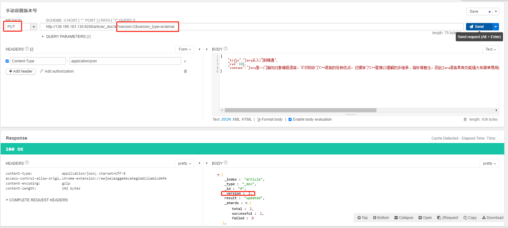 external version控制,设置的时候版本号必须大于当前文档的版本号- 语法如下: