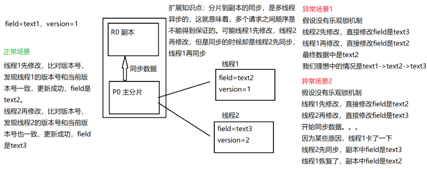 乐观锁的思路是给 es 的库存附加一个版本号,并发冲突的情况下,线程1读取库存库存 100 (版本号是1)线程2 读取库存 100(版本号1)线程1扣减库存后变成 99,线程2扣减后变成 99,线程1写入库存 99 到 es 前对比库存版本号(线程1读取的库存版本号为1,当前 es 的库存版本号为1)发现一致,于是写入库存 99 到 es 并更新库存版本号为 2,线程2写入库存 99 到 es 前对比库存版本号(线程2读取的库存版本号为1,当前 es 的库存版本号为2)发现不一致,线程2写入失败,线程2重新读取库存 99(版本号2)线程2扣减后变成 98,线程2写入库存98 到 es 前对比库存版本号(都是2)发现一致,于是写入库存 98 到 es 并更新库存版本号为3