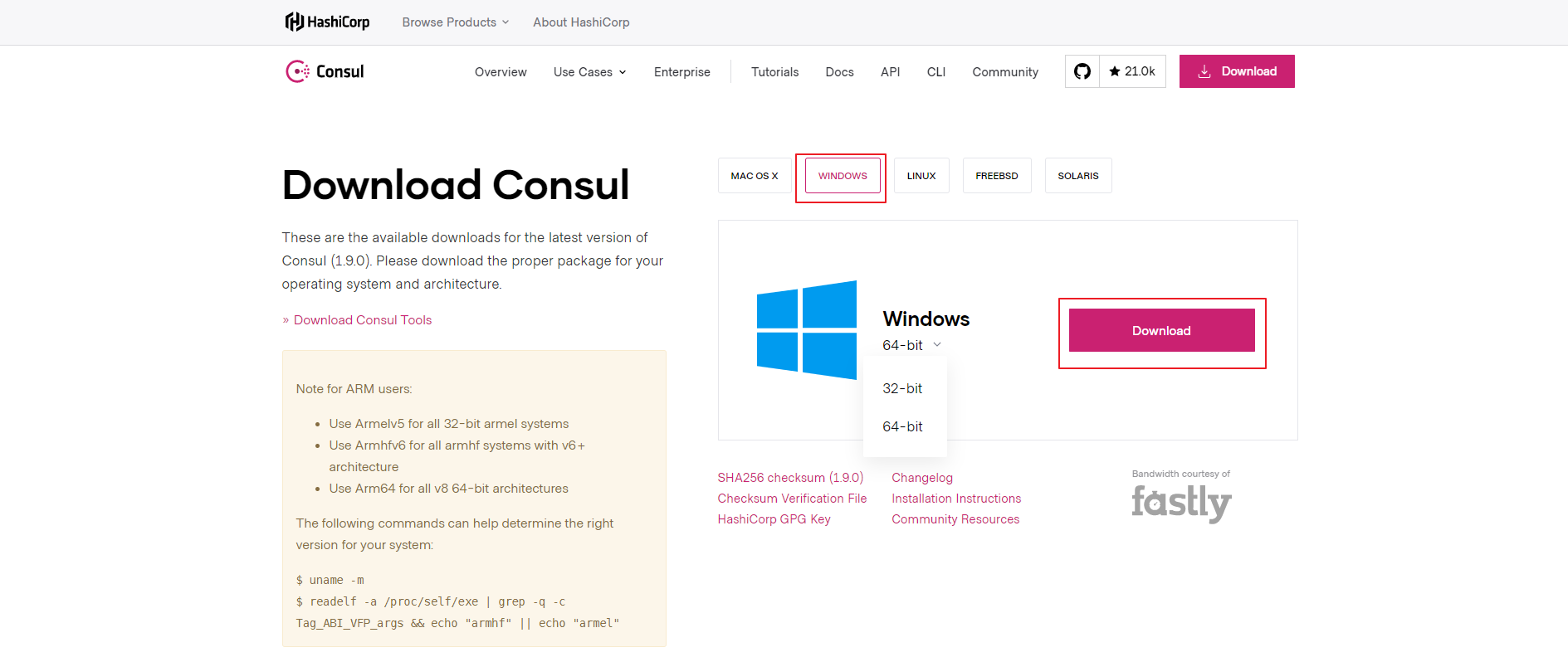 在这里我讲解的是在 Windows10 搭建一个本地的 Consul 首先你可以去官网下载一个 Windows10 的 Consul 安装包,下载地址:https://www.consul.io/
