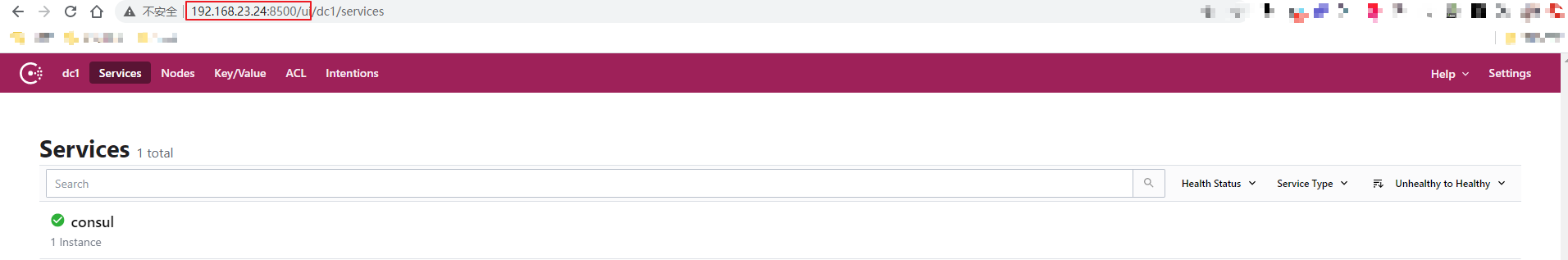 然后在浏览器中访问:ip:8500 即可查看 Consul,例如:192.168.23.24:8500。