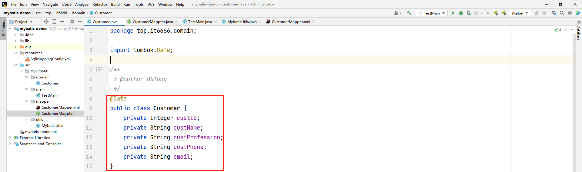 CustomerMappter customerMappter = sqlSession.getMapper(CustomerMappter.class);
